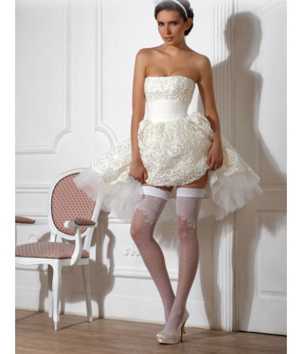 Свадебные шелковистые чулки с широкой кружевной резинкой. Изящный флоковый рисунок добавит нотку беспечности. Укрепленный носочек и силиконовая резинка – для особого комфорта.