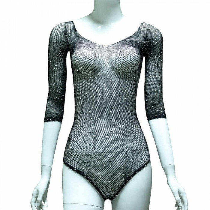 Для тех самых красоток, которые любят блистать и не любят прятать свою красоту за толстым слоем одежды! Каждая женщина знает, что правильно подобранное боди стройнит обладательницу, делая фигуру зрительно более тонкой и гибкой. Обращаем внимание на черный сексуальный боди с длинным рукавом украшенный мелкими блестящими стразами по всему изделию. Мелкая полупрозрачная сеточка приятно облегает тело создавая романтичный настрой не только у того кто видит эту красоту, но и того кто надевает боди на себя. Вы всегда сможете оголить плечики, тем самым меняя модель под состояние вашей души. Каждый край качественно отделан мелкой нитью. Боди имеет сплошной пошив(без закрепок между ног). Станьте звездочкой в его объятиях!