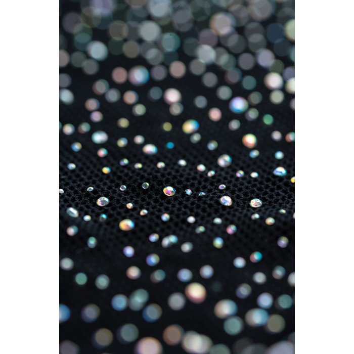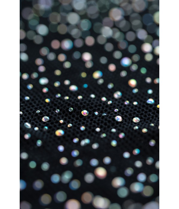 Платье Candy Girl® Cleo из эластичной бесшовной сетки равномерно украшено россыпью радужных страз, мерцающих в полумраке.