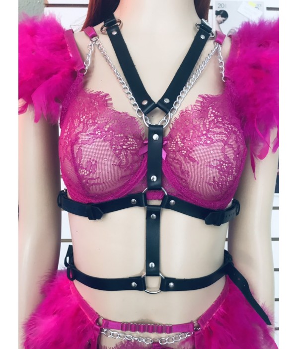 Украшение из кожи для вечеринок, прогулок, любых праздников и повседневности. Производитель данного продукта уже зарекламированного бренда в Беларуси - НИКСИ. Их изделия выполнены из тонкого материала натуральной кожи высокого качества, от чего портупея выглядит особенно изящно. Регулируемые застежки находятся, одна - на шее, две - на талии. Можно выстроить необходимый размер под тип фигуры. Размер: S/M/L.