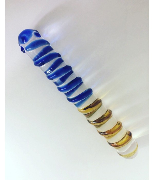 Ни для кого не секрет, что самый безопасный и оригинальный материал, из которого выполнены секс изделия – это стекло. Данная модель атрибута как произведение искусства. Прозрачный девятнадцатисантиметровый фаллос обволакивают спиралевидные узоры синего цвета, который плавно переходит в янтарный цвет. Эротическое изделие упаковано в подарочную коробочку, поэтому Вы можете не волноваться по поводу оформления презента. Такая стильная эротическая игрушка станет прекрасным дополнением в спальне и подарит уйму новых и ярких ощущений!