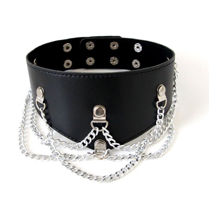 Брутальный строгий ошейник со стальными цепями станет отличным украшением как для доминанта, так и для сабмиссива, что бы максимально подчеркнуть свое доминирующее положение в ваших ролевых играх или садо-мазо сессиях. Размер ошейника универсальный и регулируется с помощью заклепок на задней части изделия, прекрасно сочетается с прочими BDSM атрибутами. Гарантируйте себе незабываемые ночи и яркие впечатления ощутив на себе весь спектр оттенков сладкой боли и возбуждающего подчинения партнеру.