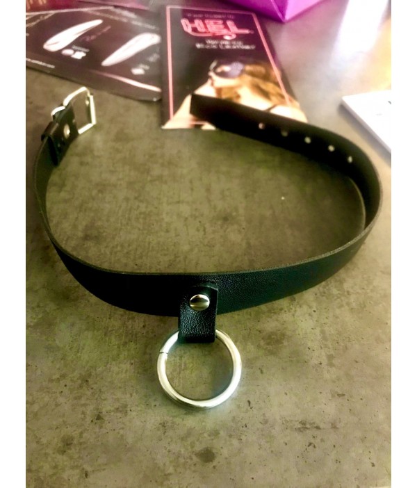 Чокер черный натуральная кожа с кольцом, арт. 3090-111