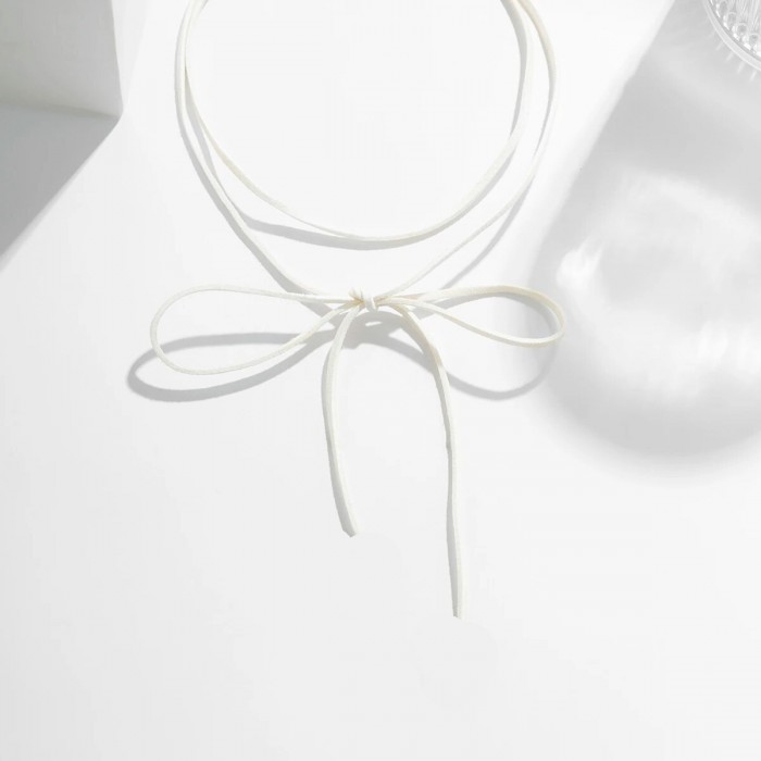 Чокер-шнурок на шею, натуральная кожа, длина, 132 см, цвет белый, арт 2525/11