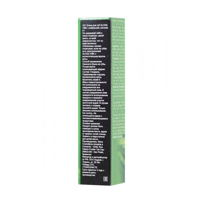 БЛЕСК ДЛЯ ГУБ INTT GLOSS VIBE MINT С ЭФФЕКТОМ ВИБРАЦИИ, МЯТНЫЙ, 6 Г