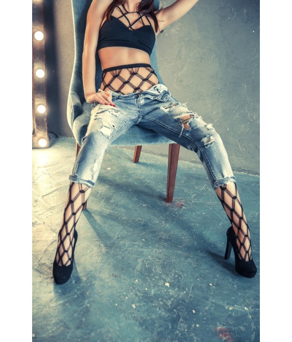 Колготки в крупную сетку черного цвета от торговой марки Erolanta!