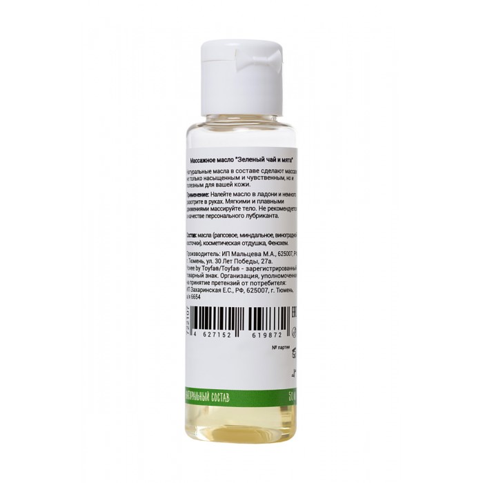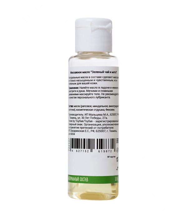 МАСЛО ДЛЯ МАССАЖА YOVEE BY TOYFA «ОСВЕЖАЮЩИЙ МАССАЖ», С АРОМАТОМ ЗЕЛЕНОГО ЧАЯ И МЯТЫ, 50 МЛ, арт 722107