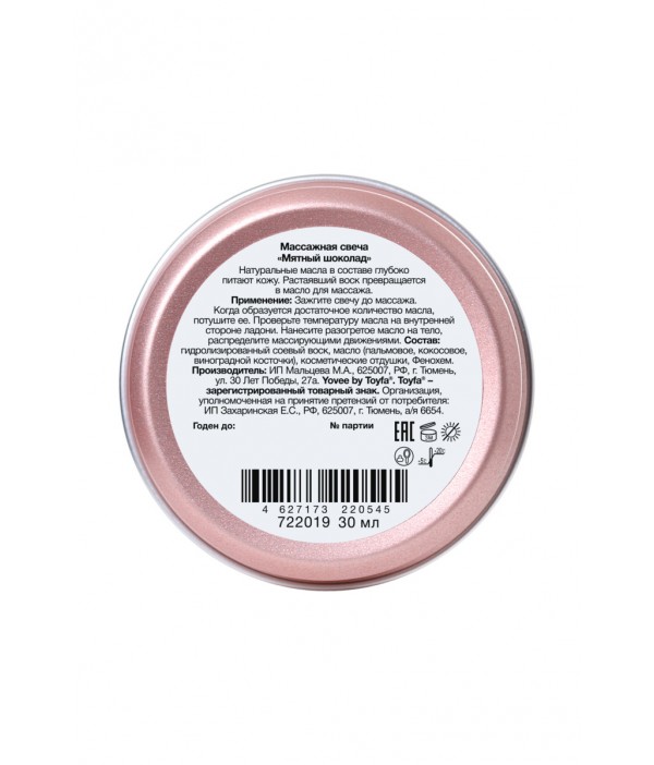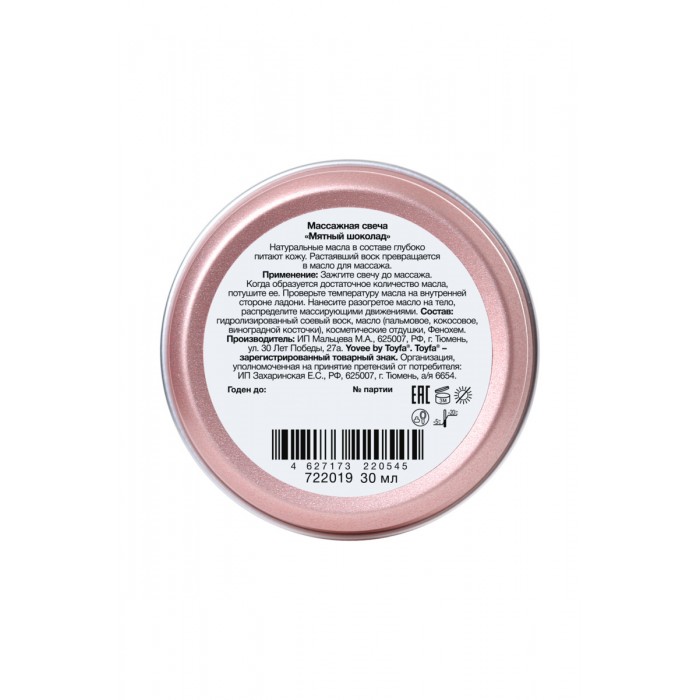 МАССАЖНАЯ СВЕЧА YOVEE BY TOYFA РОМАНТИЧЕСКОЕ СВИДАНИЕ «ПИКАНТНЫЙ МАССАЖ» С АРОМАТОМ МЯТНОГО ШОКОЛАДА, 30 МЛ, арт.722019