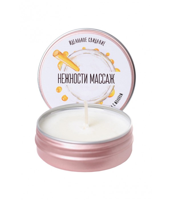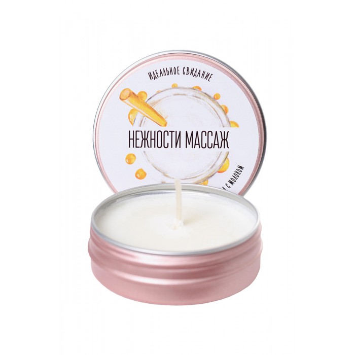 Такое свидание останется в памяти надолго! Свеча подарит незабываемые ощущения вам и вашему партнеру! Это не просто свеча, а массажное масло в твердом виде. Растаявший воск превращается в масло для массажа. После приятной и расслабляющей ванны зажгите свечу. Насладитесь нежными ароматами мёда с молоком. Предложите партнеру расслабиться в ожидании массажа. Погасите свечу и немного подождите, пока масло остынет. Лейте масло вдоль спины медленно, а затем начните с лёгких массирующих движений. Сделайте массаж своим обнаженным телом — так он станет ещё более интимным и чувственным. К тому же натуральные масла в составе глубоко питают и увлажняют кожу!