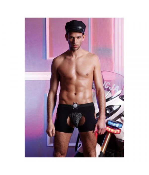Костюм полицейского из 2 предметов: трусы-стринги на эластичной резинке и матовые шорты со значком. В комплекте: трусы-стринги, шорты со значком. Размер: OS