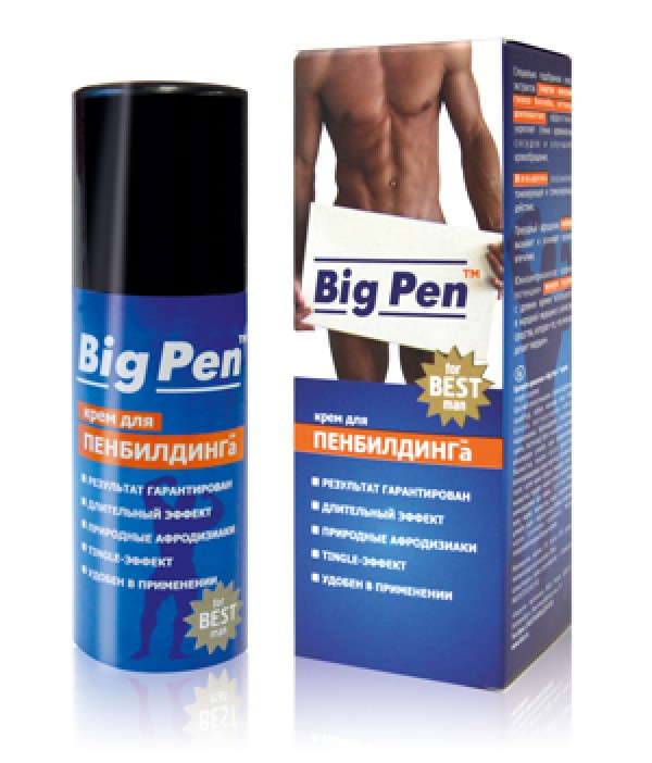 Увеличить размер пениса также легко, как, например, бицепсов. Для этого используется специальная методика - пенбилдинг™ (от слов «penis» и «building», т.е. дословно «построение пениса»). Это постепенное механическое растяжения пениса мужчины до желаемых размеров. За счет удлинения кровенаполнение полового органа значительно увеличивается во время эрекции. Член становится большим и упругим. Крем «Big Pen» – персональный «тренер» и помощник для занятий пенбилдингом. Разогревая кожу полового члена, он настраивает своего обладателя на спортивный лад и предстоящие упражнения. Средство разработано специально для максимального комфорта: комбинирует нежное и супердлительное скольжение масла и приятную упругость крема. Исключительный уровень комфорта и приятных ощущений сочетается с особенной структурой. «Tingle»-эффект является уникальным свойством «Big Pen». Это чувство покалывания и дрожи, которое возникает за счет быстрого проникновения активных компонентов и дает реальное ощущение происходящих изменений. Крем обогащен натуральными компонентами. Смесь экстрактов (каштан конский, гинко билоба, иглица шиповатая) эффективно укрепляет стенки кровеносных сосудов и улучшает кровообращение, делает соединительные ткани эластичными и легко растяжимыми. Южноамериканское «дерево потенции» муира пуама с древних времен используется в народной медицине в качестве средства, которое «то, что мягкое, делает твердым». Женьшень оказывает тонизирующее и стимулирующее действие. Природный афродизиак имбирь вызывает и усиливает половое влечение. Применение: ежедневно (в течение курса 10-14 дней) наносите крем на ствол и головку полового члена массирующими движениями до полного впитывания. После чего приступайте к специальным упражнениям. Длительность занятий пенбилдингом в среднем составляет 15-20 минут в день. Упражнения подробно описаны в инструкции, прилагаемой к крему «Big Pen».