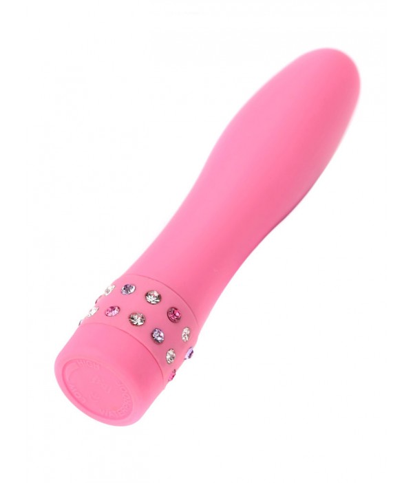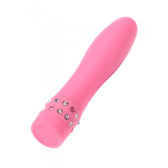 Минивибратор с украшением из страз у основания в розовом цвете.
