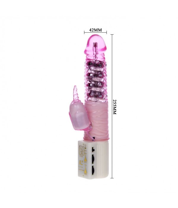 Инновационная секс игрушка для женщин, которые знают, как доставить себе наивысшее наслаждение. Фтуристичный на вид вибратор розового цвета, оснащен ротацией головки и вращающимися внутри фаллоса по всей длине шариками, для дополнительной стимуляции стенок влагалища. В устройстве предусмотрена клиторальная вибростимуляция с помощью острого «язычка», её можно использовать как совместно с другими функциями, так и отдельно. Изготовлен из полимера, не содержащего токсины. Работает от батареек.