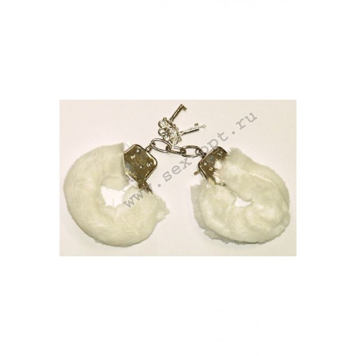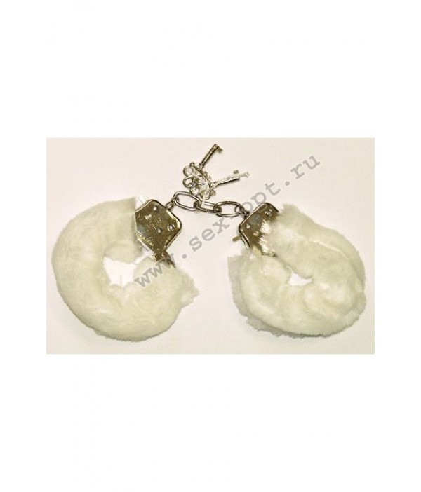 Наручники меховые белого цвета с металлической основой, на ключике.