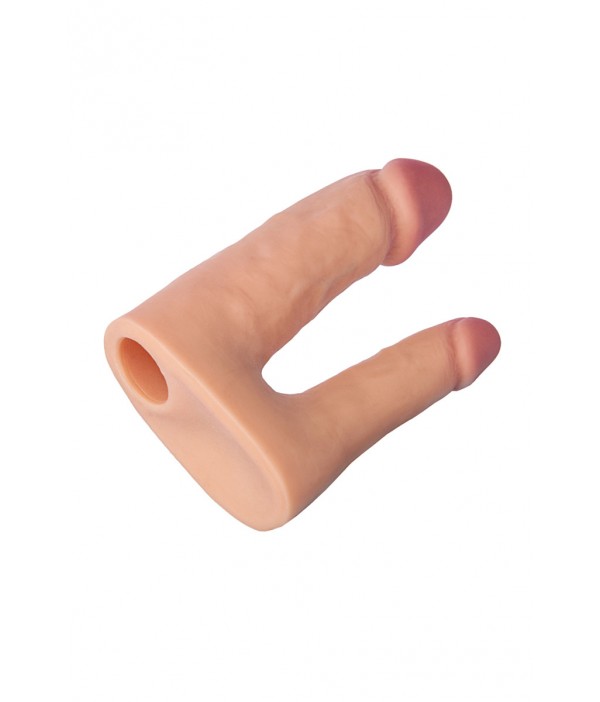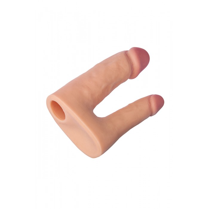 Многие женщины благодаря своей природной стеснительности только мечтают о сексе втроем или одновременной анальной и вагинальной стимуляции, ведь знают, что это приносит наиболее сильные ощущения и более яркие оргазмы. Но не стоит больше комплексовать, ведь проблема решена! Насадка для двойного проникновения телесного цвета позволит подключить вашего любимого в игру! Насадка имеет одно отверстие и одевается непосредственно на пенис, а ниже компактный реалистичный фалоимитатор предназначенный для анального проникновения и вот уже вы сможете вдвоем поиграть в игры для троих! Перед применением игрушку необходимо смазать лубрикантом на водной основе для наиболее комфортного использования. В комплекте идет шнурок для фиксации!