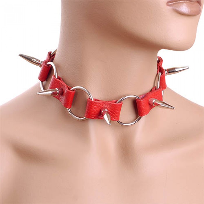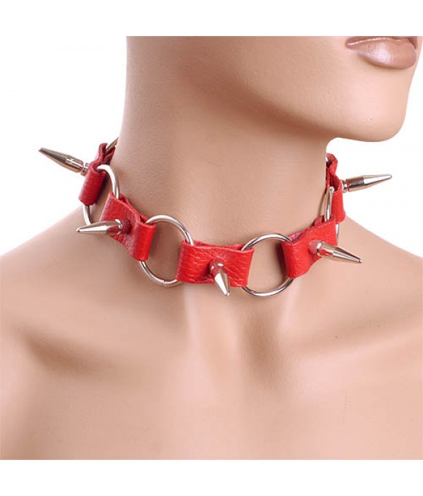 Красный кожаный ошейник с металлическими вставками в форме шипов от NOTABU.