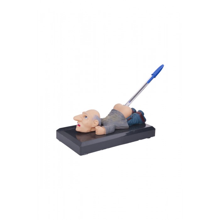 Небольшая подставка для ручки с очень интересным и веселым дизайном, фигурка из пластика в виде человека в пикантной позе и отверстием для карандаша или ручки в еще более пикантном месте способна развеселить любого! «Фишкой» такого подарка является небольшая кнопка в разъеме подставки, которая при нажатии заставляет человечка издавать различные звуки сексуального характера. Питание происходит от трех пальчиковых батареек. В комплект так же входит и ручка.