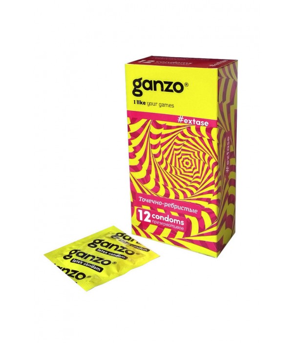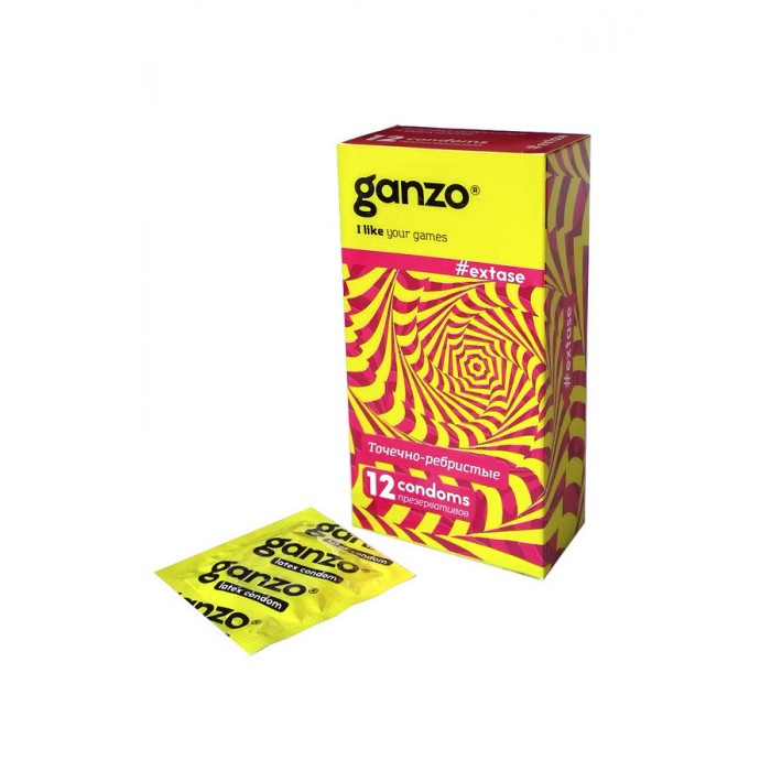 ПРЕЗЕРВАТИВЫ GANZO EXTASE, С ТОЧЕЧНО-РЕБРИСТОЙ ПОВЕРХНОСТЬЮ, АНАТОМИЧЕСКОЙ ФОРМЫ, ЛАТЕКС, 18 СМ, 12 ШТ, арт.141