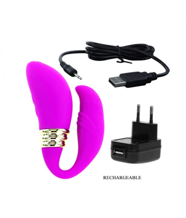 Мощный вибратор для пары (аналог We-Wibe) из силикона в подарочной коробке PRETTY LOVE, с 12 режимами вибрации и ярковыраженной стимуляцией клитора. Изделие насчитывает в себе целых два мотора. Одновременная стимуляция главных женских эрогенных зон - клитора и точки G,а так же стимуляция пениса при проникновении станет лучшим и ярким впечатлением за всю ночь! Работает от аккумулятора, заряжается от электрической сети 220V (адаптер в комплекте). Размер: наружный стимулятор - длина 16 см, диаметр 7 см; внутренний стимулятор - длина 9 см, диаметр 5 см.