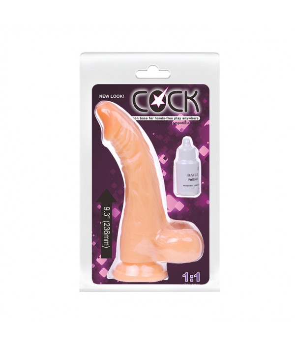 Фаллоимитатор на присоске телесного цвета. Имеет форму члена с ярко-выраженной головкой, рельефный, выполненный из материала ТРЕ, не имеет швов. Внутри ствола имеется хребет ,благодаря чему , принимает удобный угол наклона. Общая длина – 23,5 см, рабочая длина- 18см, максимальный диаметр -4 см,без запаха. Упаковка- прозрачный блистер. Смазка в комплект не входит.