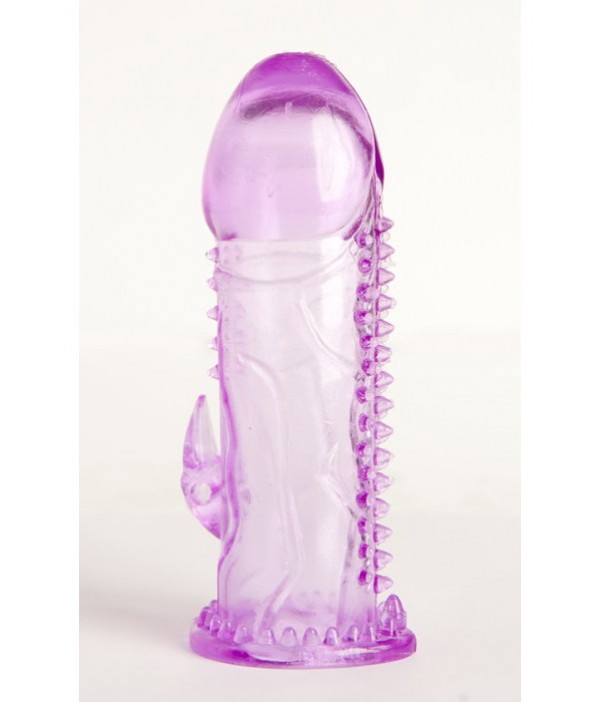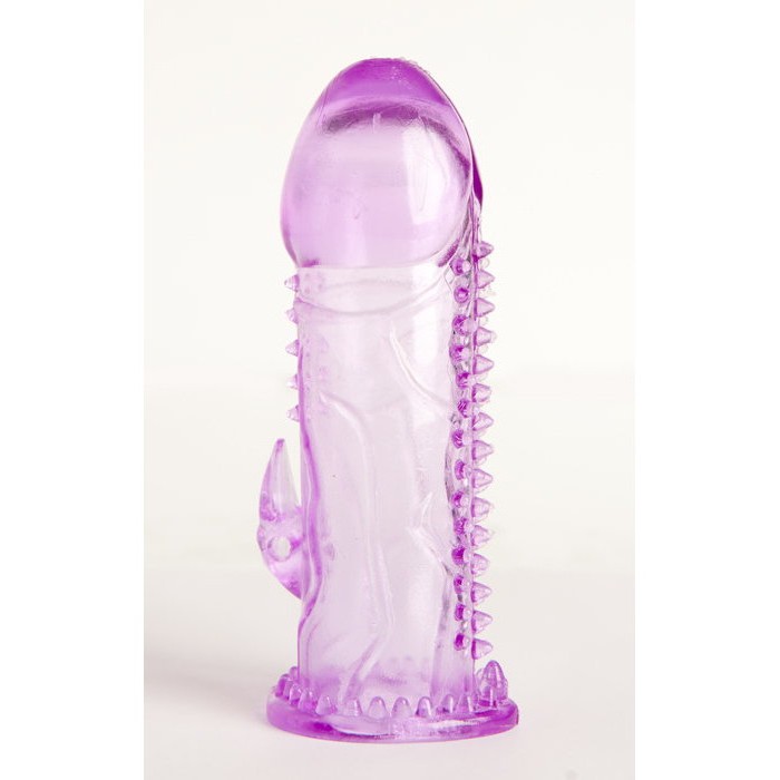 Полупрозрачная фиолетовая насадка гелевая с шипами на стволе имеет сложный рельеф, который и обеспечивает столь высокую эффективность. Хорошо заметка обтекаемая головка, плавно переходящая в ствол со множеством неровностей. В нижней части проходит полоска из более крупных шипов, которая прекрасно массирует внутреннюю поверхность влагалища. У самого основания присутствуют дополнительные элементы, собранные в своеобразное стимулирующее колечко. При глубоком вхождении оно воздействует на область половых губ и клитор.