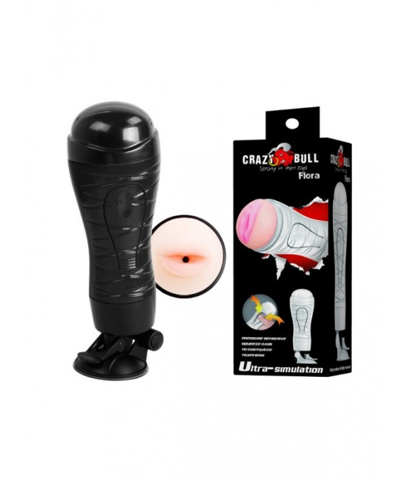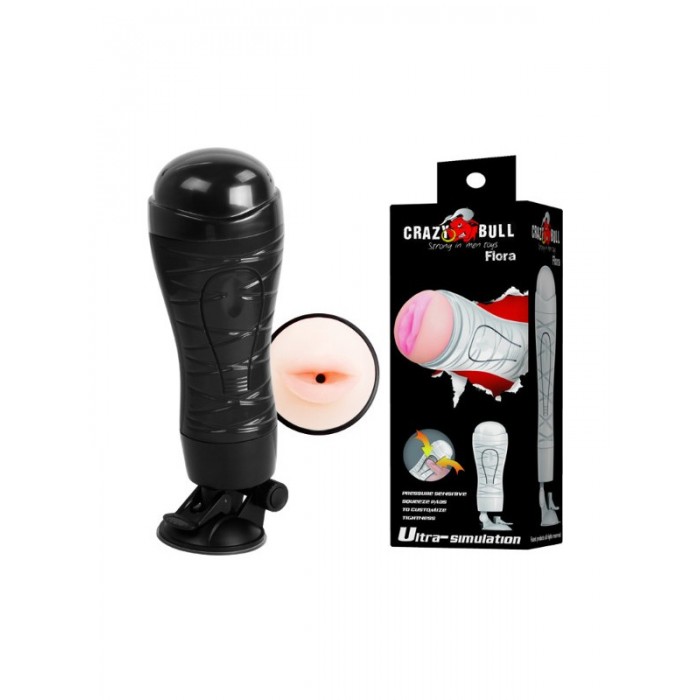 Мастурбатор ротик с присоской Crazy Bull Flora в черной колбе, арт BM-00900T48N-2