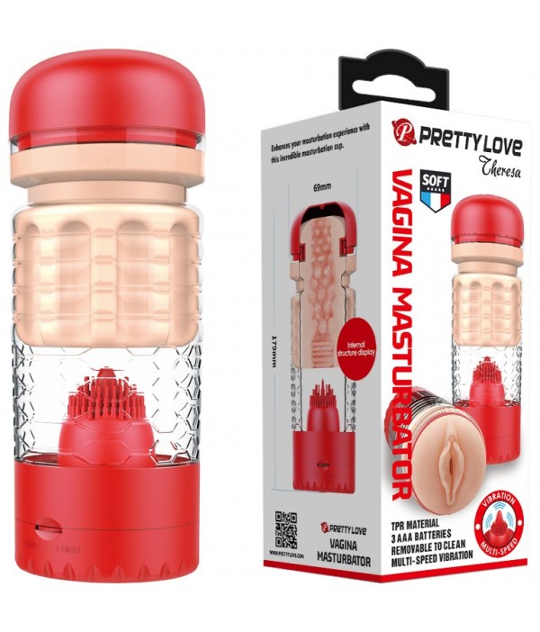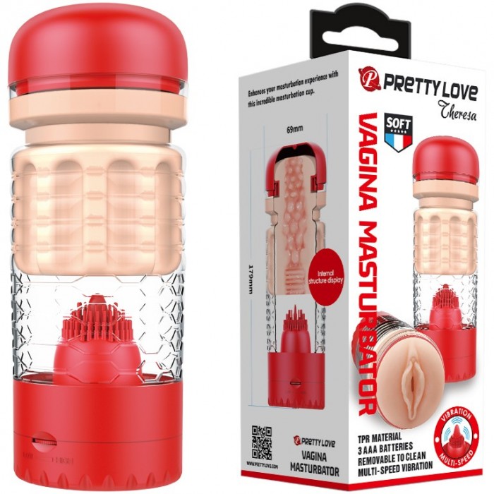 Мастурбатор - вагина с вибрацией «Emily», цвет красный, с оригинальным рисунком, арт BM-00900T65-1