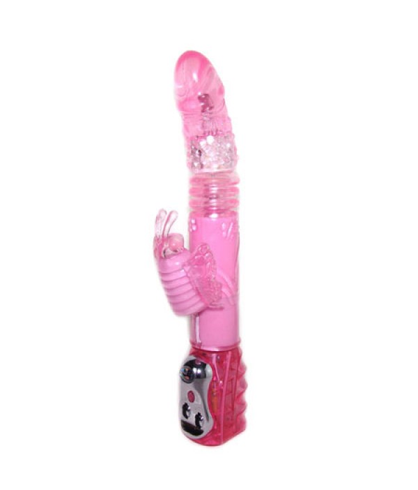 Ротатор с функцией вращения ствола и клиторальным стимулятором в виде бабочки. Имеет регулируемые по мощности режимы вибрациии и вращения. Данные режимы можно совмещать. Мягкий, имеет ярко выраженную головку, пупырышки и ребристость по поверхности. Материал изготовления- ТРЕ ( гель). Работает от 4-х батареек типа АА (нет в комплекте). Общая длина 29,5 см, рабочая длина 15 см, максимальный диаметр 4 см, длина клиторального стимулятора 6 см, диаметр 3 см.