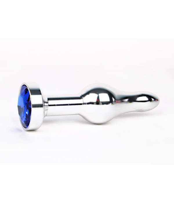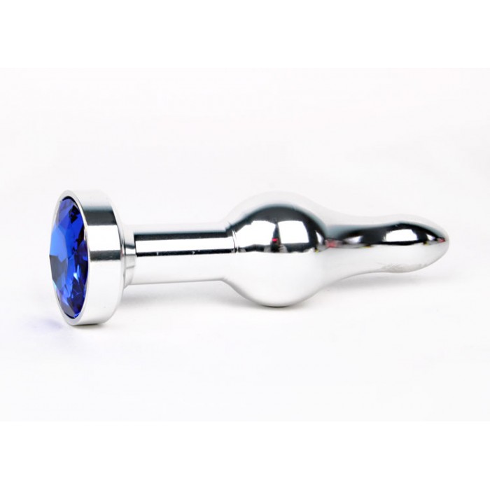 Анальная втулка серебряного цвета с синим кристаллом.