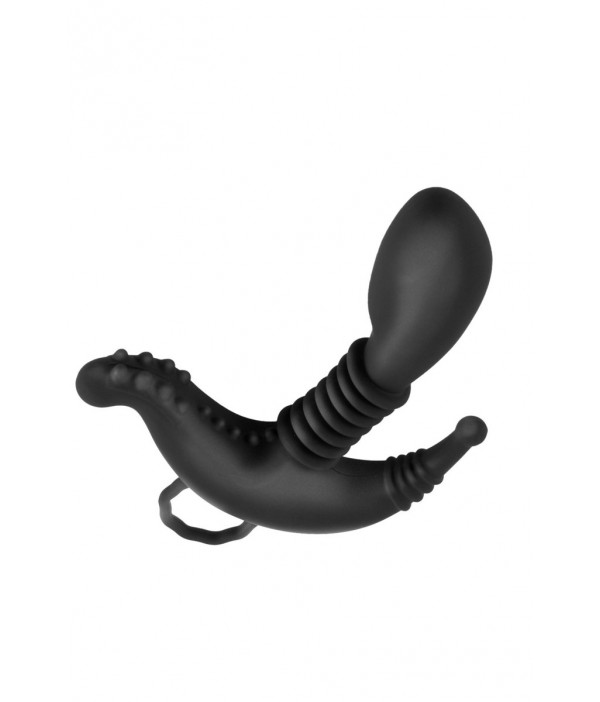 Продуманная изогнутая форма позволяет безошибочно оказывать стимуляцию в нужных местах. Основная стимуляция (стимуляция простаты) происходит за счет овального наконечника. Наконечник слегка заострен, чтобы облегчить введение. Текстурированные выступы на втором по величине отростке оказывают внешнее давление на промежность, тем самым стимулируя находящиеся в этой области эрогенные зоны. Использование стимулятора простаты во время полового контакта способствует более жесткой эрекции и сильнейшему оргазму. Кольцо на основании стимулятора обеспечивает простое и безопасное извлечение. Длина вставной части 7,5 см. Гипоаллергенен. Материал не содержит фталатов. В комплект включены: два напальчника, дезинфецирующий крем, любрикант, очиститель для игрушек.