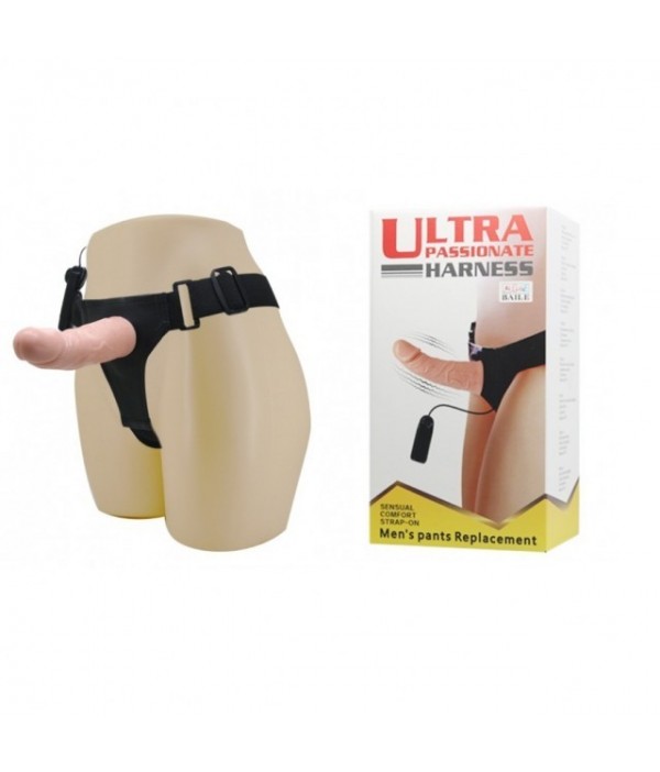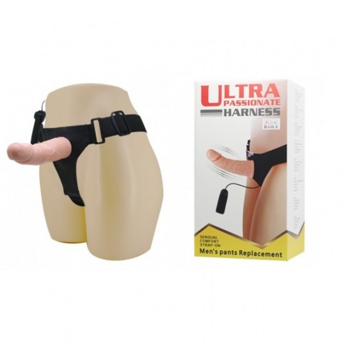 Удобный страпон на чёрных регулируемых ремешках. Универсальная сексуальная игрушка подойдет как для женского доминирования над мужчиной, так и для эротических однополых игр. Трусики стринги со штырьком, помогут Вам ублажить партнера и доставить ему незабываемое удовольствие. Фаллос оснащен мультискоростной вибрацией для массажа и стимуляции интимных зон у женщин и мужчин. Скоростной режим регулируется выносным пультом управления, работающего от двух барареек типа АА. Фаллическая часть выполнена из ТПР (термопластичная резина, TPR) в телесном цвете. Отлично подойдет для новичков, длина секс-инструмента 15 сантиметров при диаметре 5.