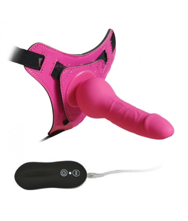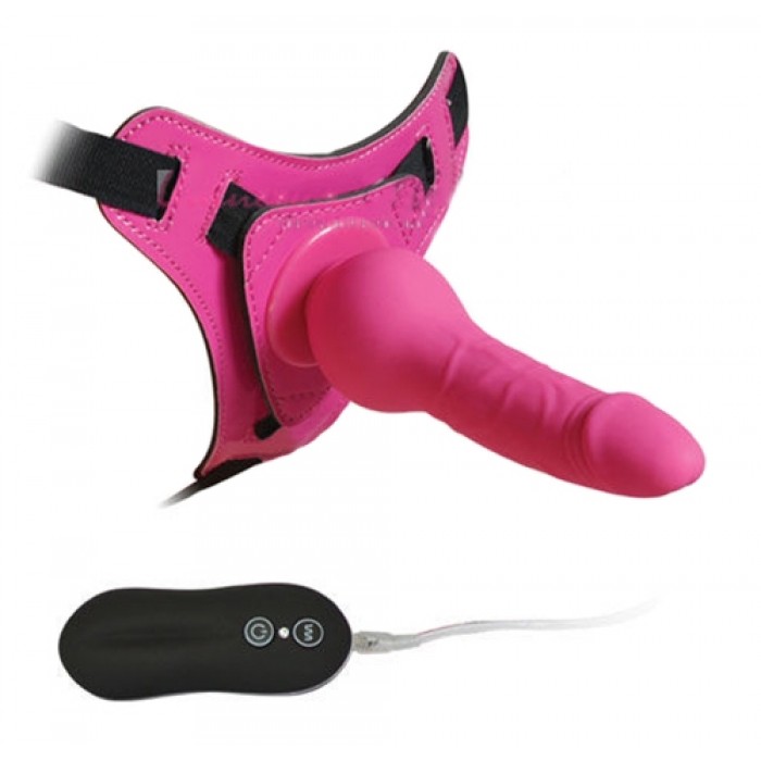 Страпон с вибрацией розовый Harness Silicone Dildo