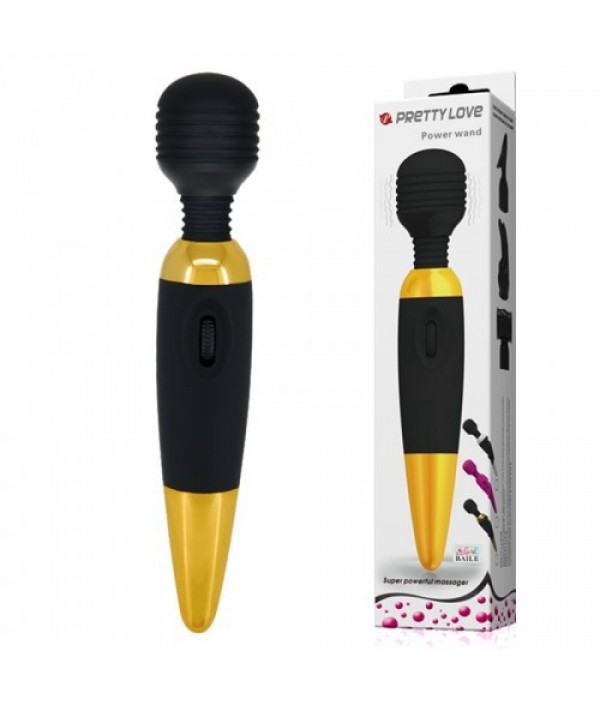 Перезаряжаемый вибромассажер Pretty Love Power Wand с регулируемой функцией интенсивной вибрации не имеет запаха, гипоаллергенный, а мощный моторчик работает бесшумно.