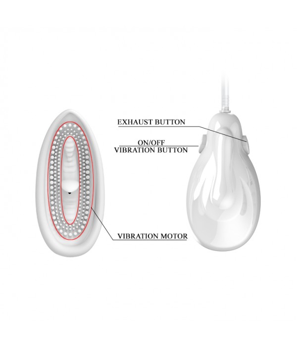 Вакуумная помпа для клитора и малых половых губ с автоматической откачкой воздуха для женщин. Помпа специальной анатомической формы с рабочей длиной 11 сантиметров, в комплекте с мини вибромассажером, для более ярких ощущений. Приведёт самые чувствительные места в состояние сильнейшего возбуждения за счет быстрого прилива крови, что несомненно обеспечит Вам яркий оргазм. Силиконовое приспособление водонепроницаемо, пульт управления работает от трёх батареек- АА.
