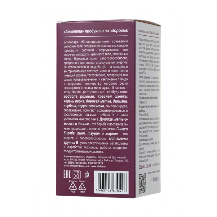 СИРОП ДЛЯ ЖЕНЩИН «СЕКС ENERGY WOMAN» ДЛЯ ПОВЫШЕНИЯ ЛИБИДО И СЕКСУАЛЬНОСТИ, 230 МЛ, арт 70