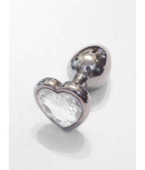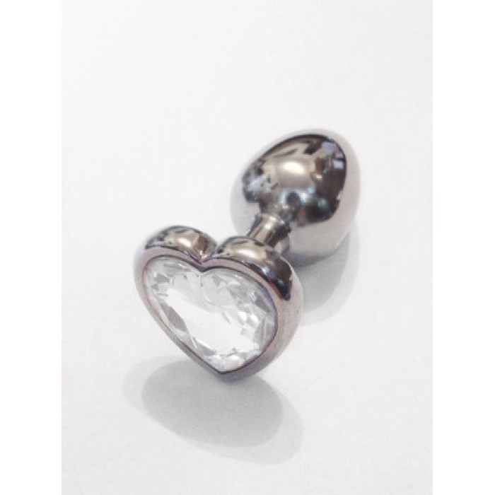 Серебристая металлическая втулка с белым кристаллом в форме сердца для высшего наслаждения.